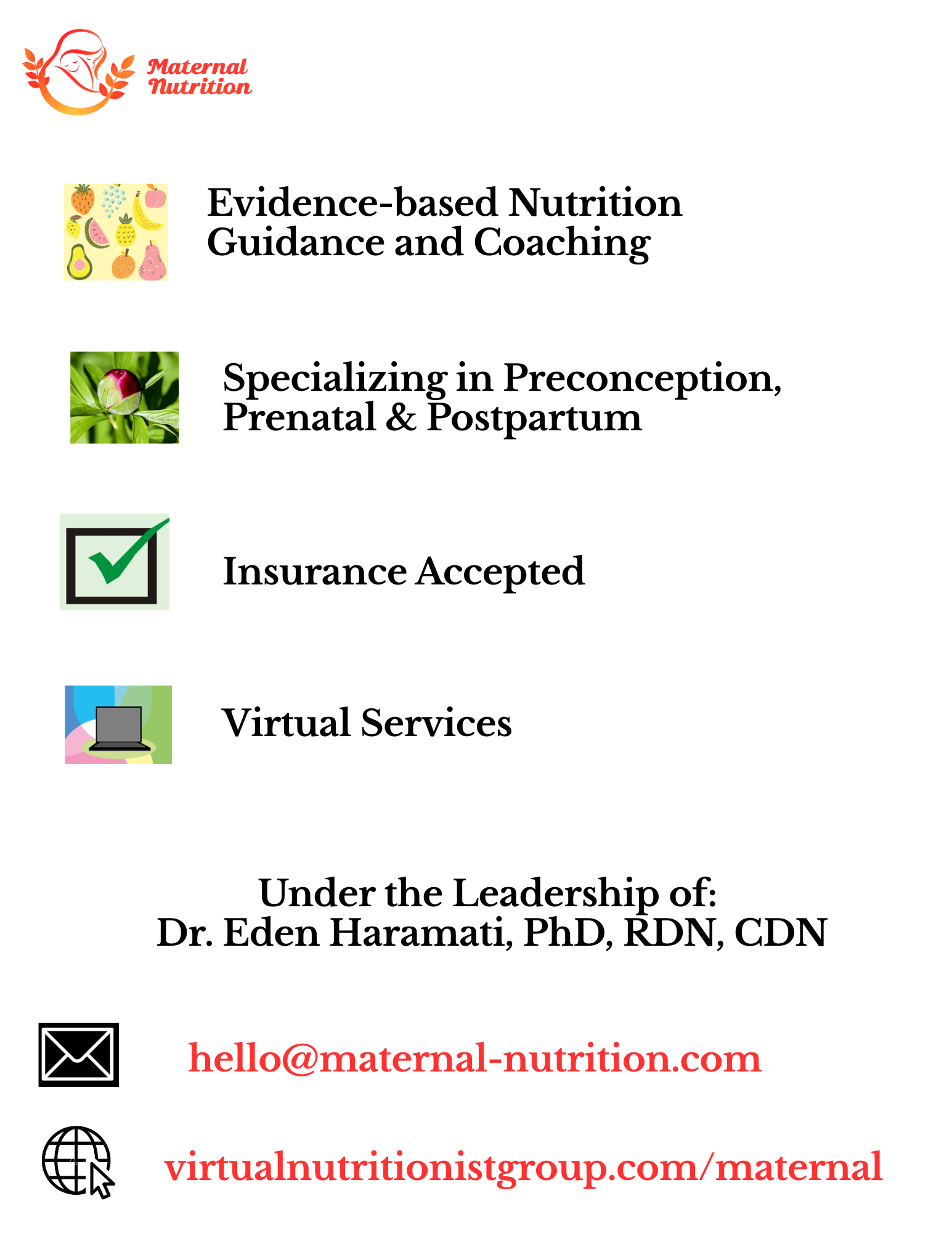 Email: hello@maternal-nutrition.com or info@virtualnutritionistgroup.com